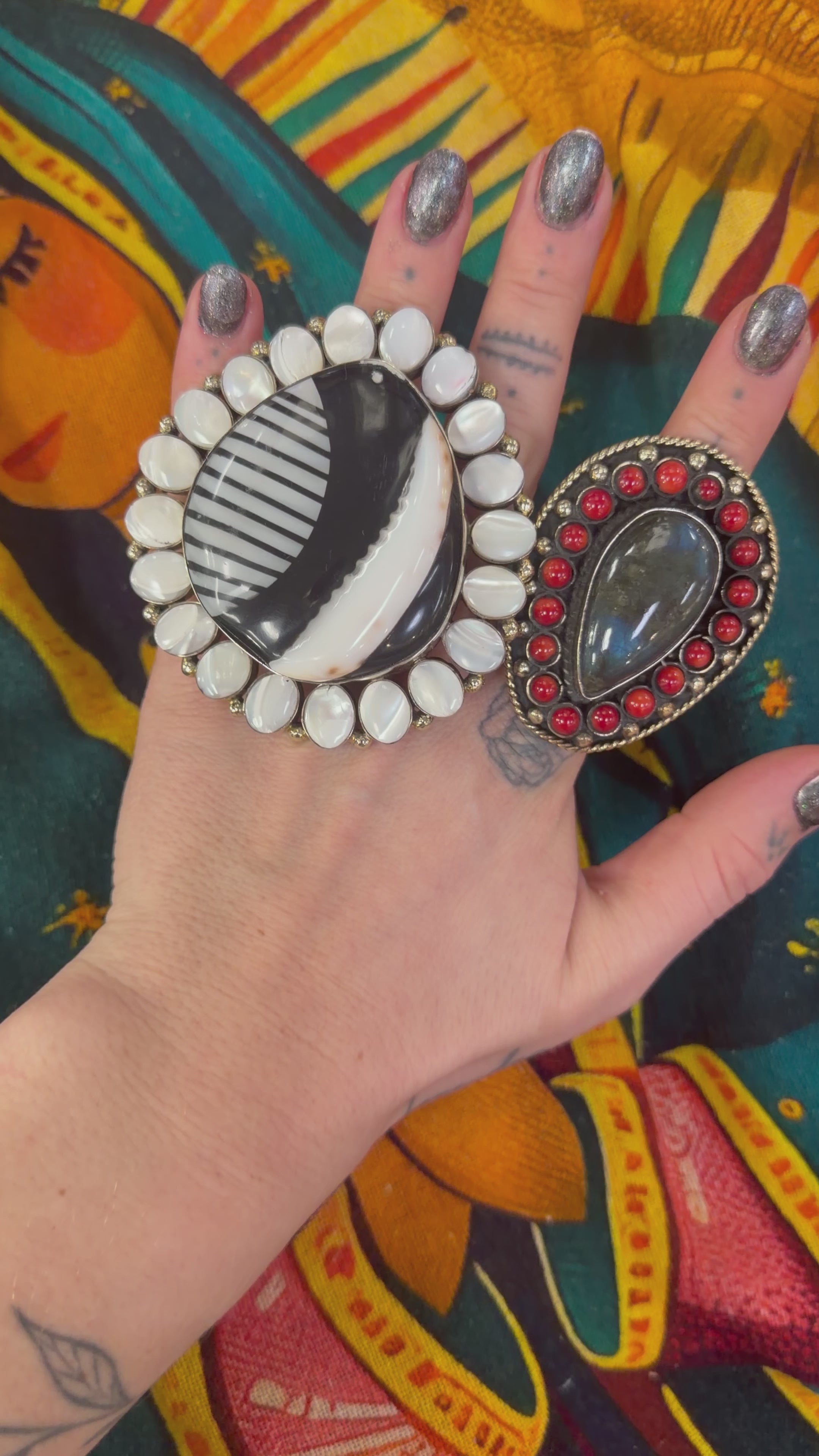 Labradorite & Red Coral Teardrop Ring