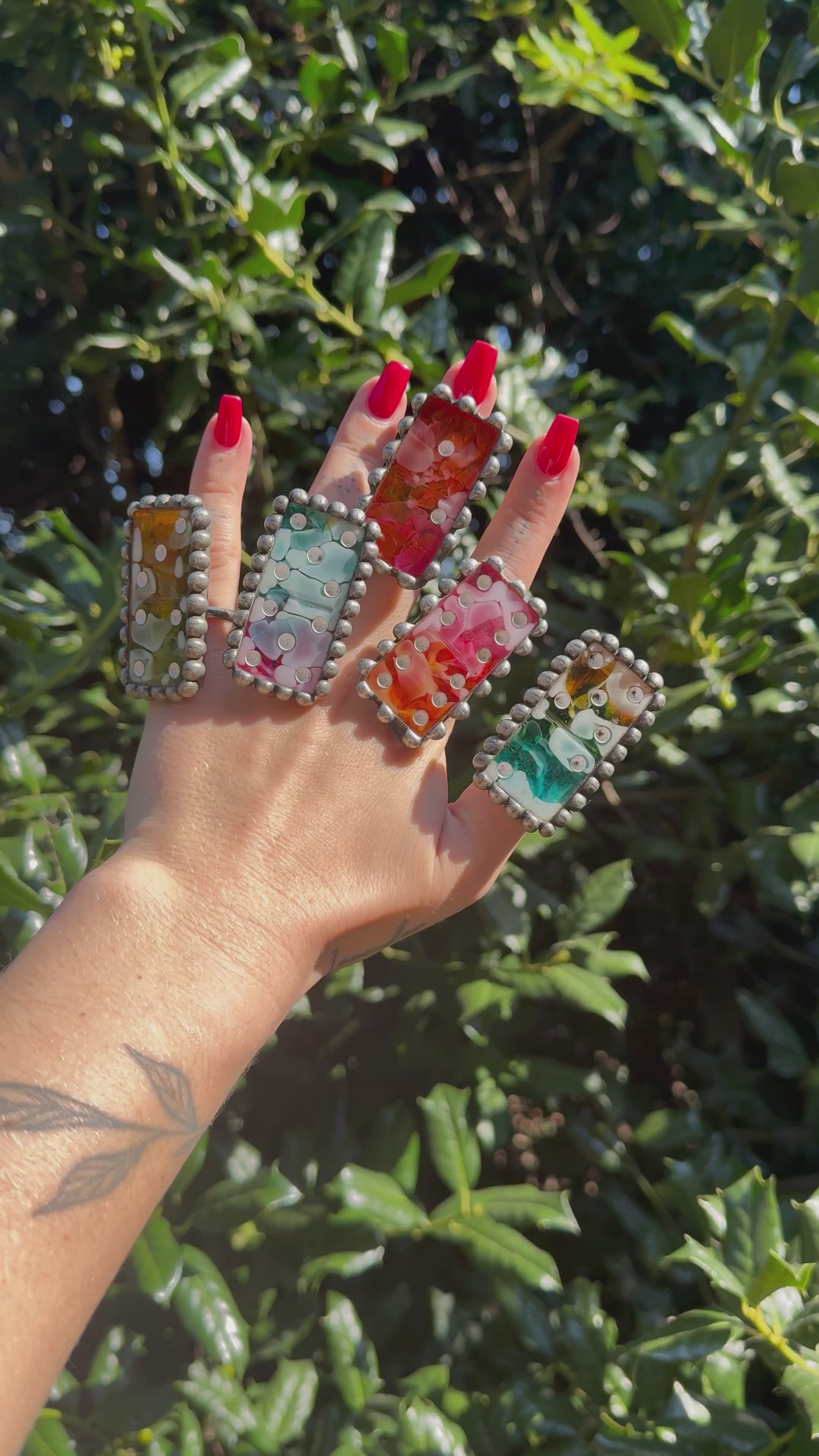 Brass Patina Ring - Burnt Orange Diamonds and Squares
